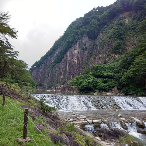 天然記念物材木岩へ。岩が材木な並んでるように見える様は圧巻です。